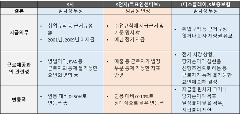 3. S전자 사건 등 최근 경영성과급 판례와의 비교