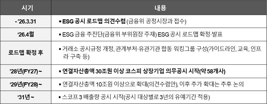 2. ESG 공시 로드맵(의견수렴안) 주요 내용